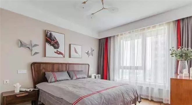 臥室的色彩要與主題相互呼應(yīng),這個沒有過多的色彩,布置和家具,沒有喧囂與繁復,一派寧靜悠遠,顯示出業(yè)主溫文爾雅,平和理性的特點。