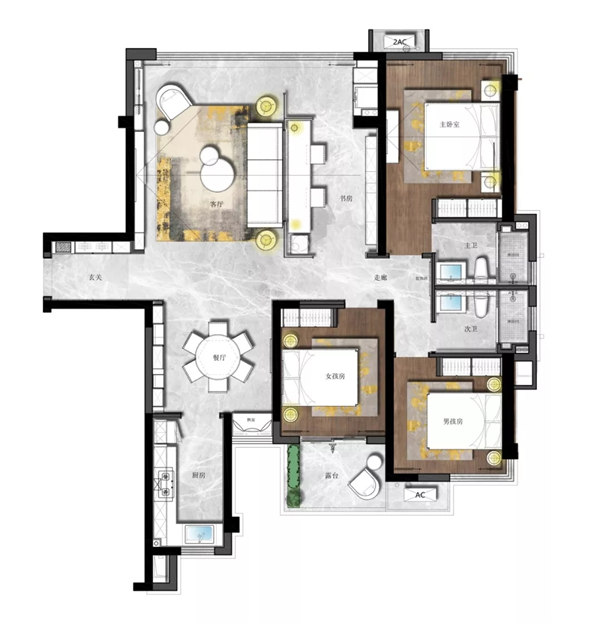 珠海華發(fā)四季城三居現(xiàn)代簡約風(fēng)格裝修效果圖