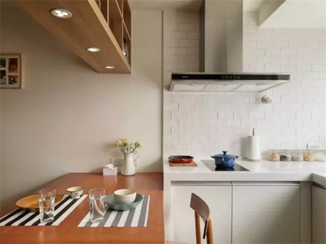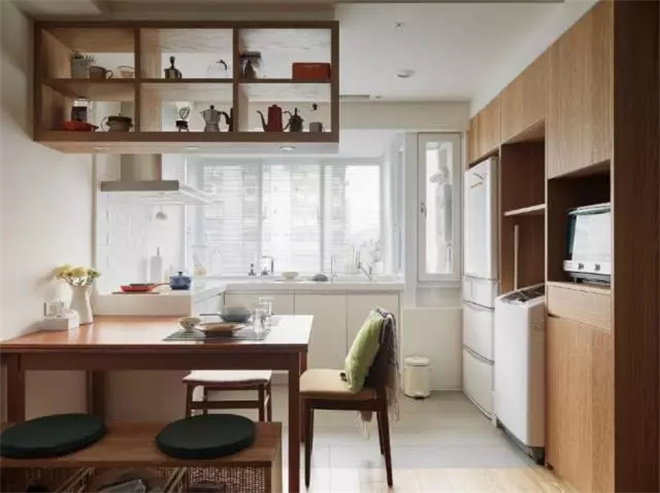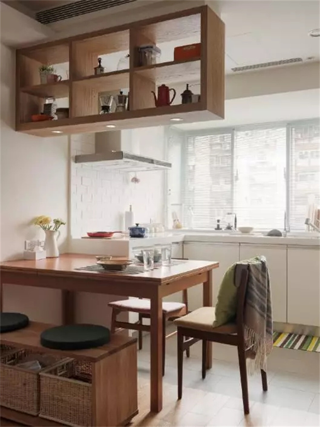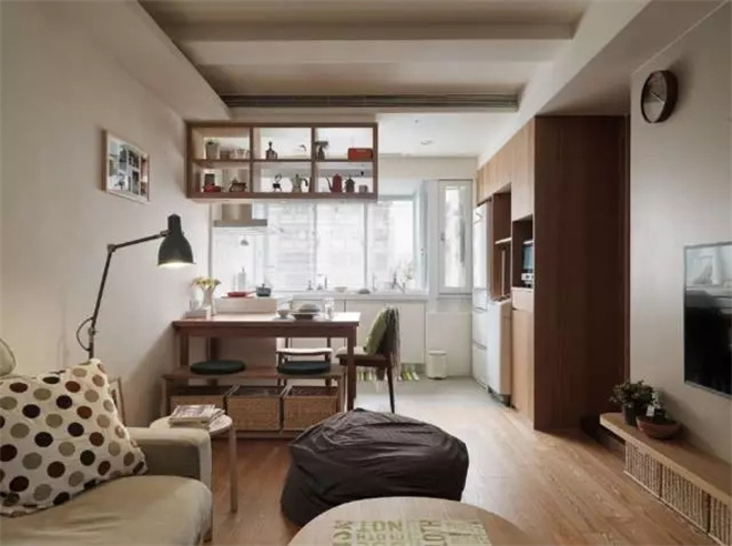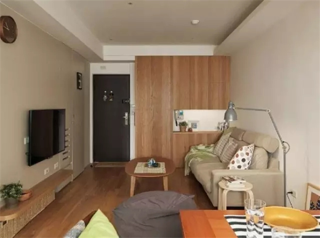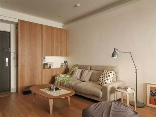 木質的柜子更具有生活的氣息,旁邊就是通往臥室的門,推拉式的木門