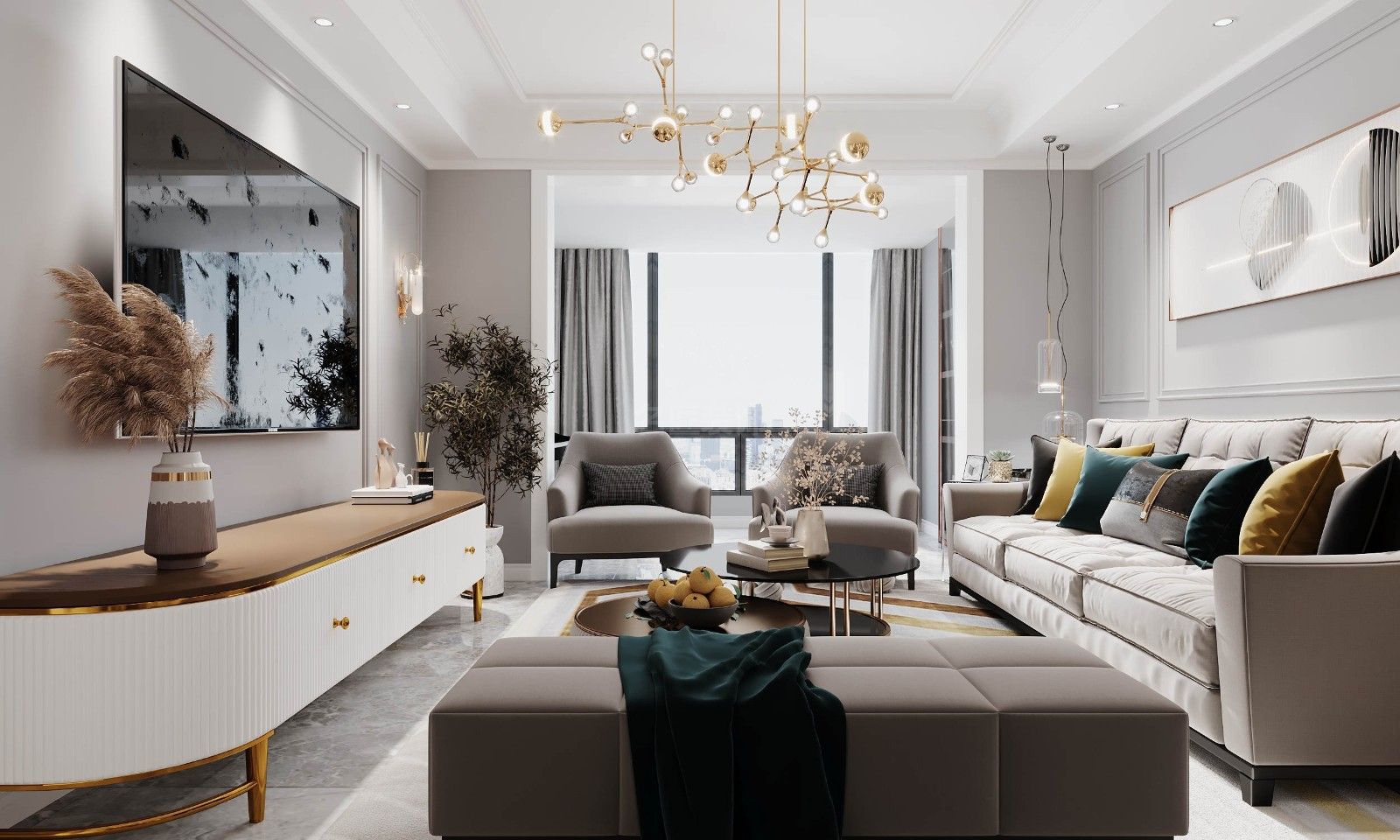 現代風格100平米以下三居室