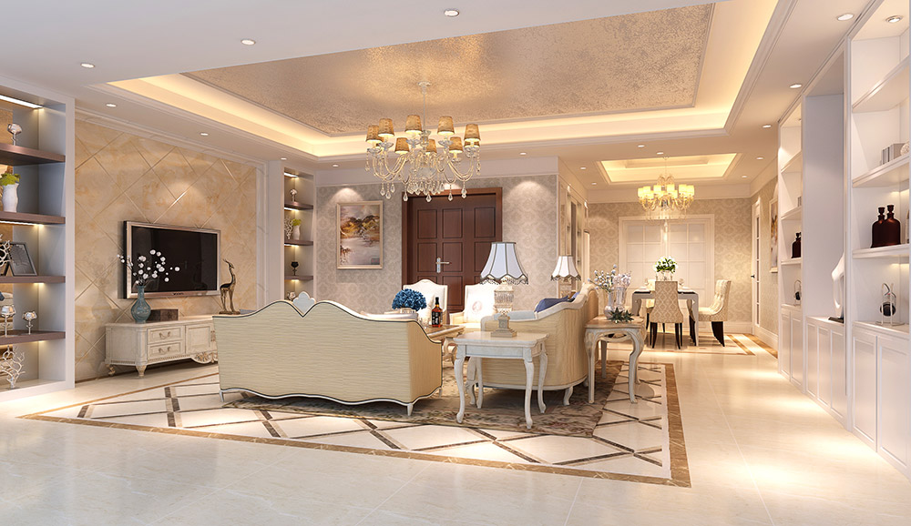 河源東江灣三居歐式風格裝修效果圖