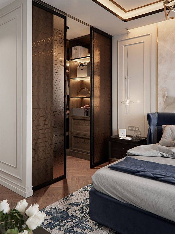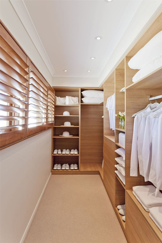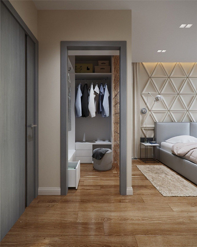 臥室限定面積內規劃衣帽間,應最大限度契合人體自然狀態,來確定衣柜的長、寬、高、深,減輕使用者的主動適應負擔。