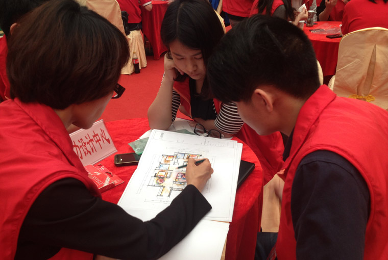 用心裝】迎春盛典,于馬會家居中庭隆重舉行?;顒悠陂g名匠裝飾(集團)總設計師康永鮮領銜的數十位金牌設計師團隊發布2015年設計新風尚,為羊城客戶現場解析最新樓盤戶型,并針對戶型結構和具體功能需求,提供最出色的設計方案!