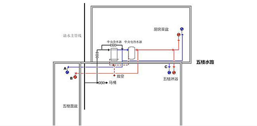 8、冷熱水管要遵循左側熱水、右側冷水及上熱下冷的原則